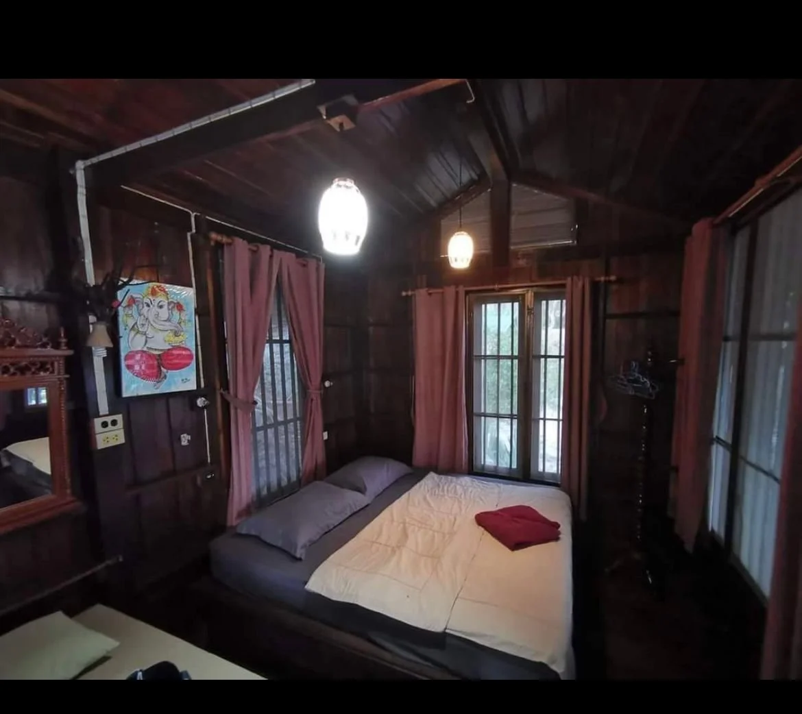 These are simple, island-style wooden cottages — cozy and charming, though not luxury stays. Each has air-conditioning and a double bed.